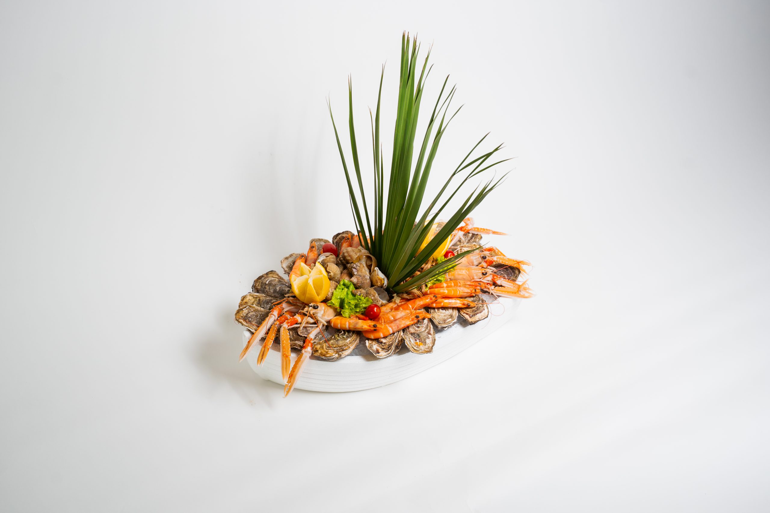 Un plateau iodé et généreux : crevettes roses, grises, bulots, langoustines, huîtres… Une sélection fraîche et savoureuse, idéale pour un repas de fête ou un apéritif de la mer réussi.